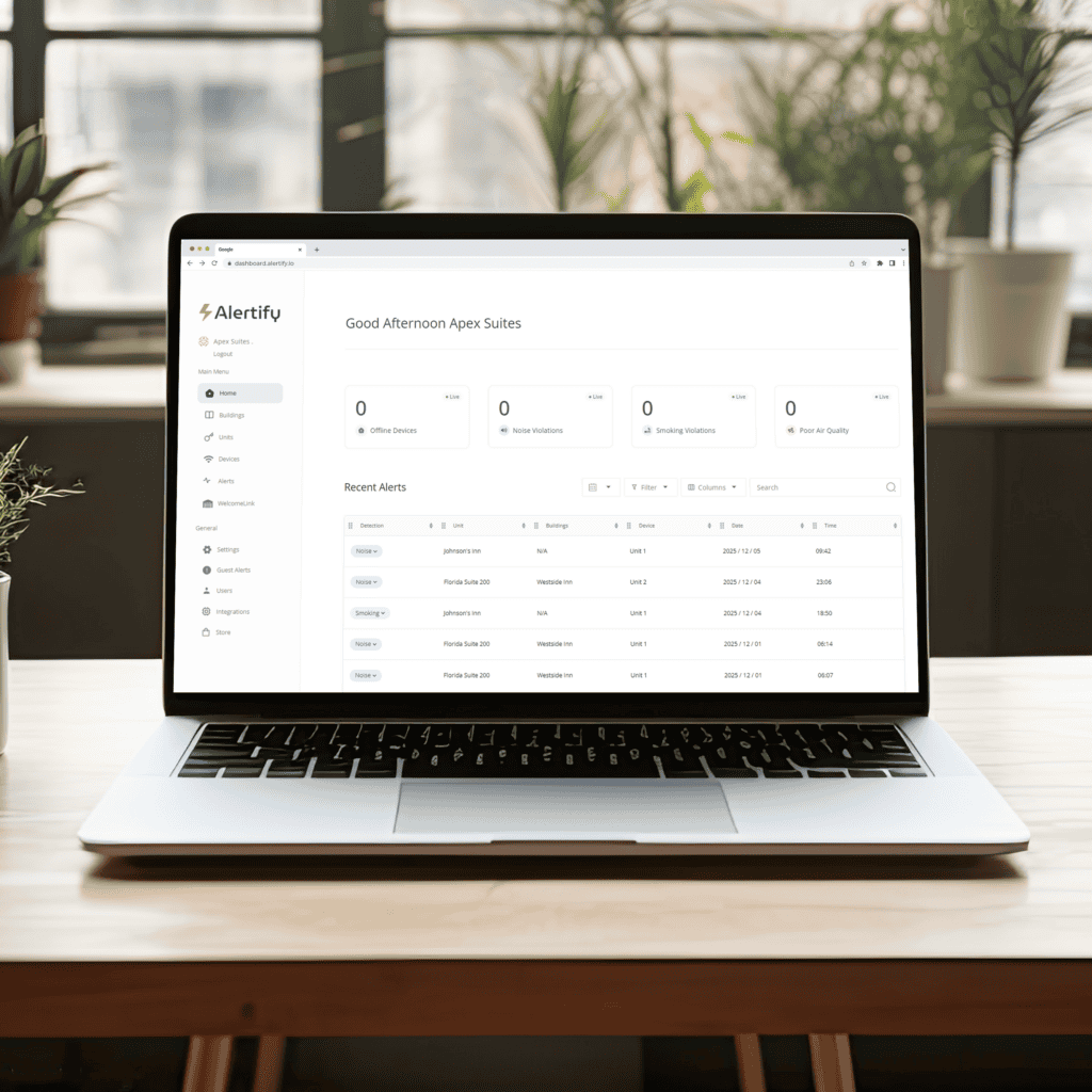 Chez Alertify, nous encourageons les hôtes à faire preuve de transparence envers les voyageurs en les informant de la présence d'un détecteur de bruit sur la propriété pour garantir le respect du règlement intérieur. De plus, certaines OTA exigent que les hôtes divulguent l'utilisation de détecteurs de bruit dans leurs annonces.